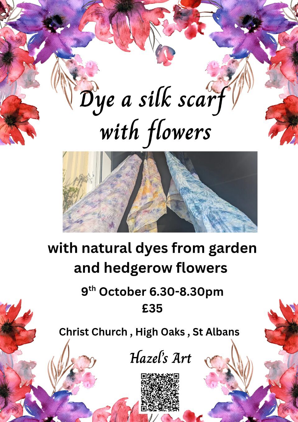Let’s keep the summer going a little longer! Join us for a botanical dyeing workshop where you can learn the art of bundle dyeing . During this workshop we will dye a silk scarf with beautiful colours using a mix of the last of the summer flowers , a few early autumn flowers and dried flowers .The bundle dyeing process involves wrapping plant materials in cloth and steaming to leave the natural pigments permanently on the fabric.