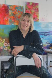 My paintings are inspired by being outdoors and active. I love to walk through the landscape which continually offers new and unexpected moments of inspiration. I am always exploring and can be captivated for ages by what I find – whether it’s stunning colour combination, a vast open space, intricate close up details or something beyond what I see with my physical eyes. I capture these experiences by taking photos, making sketches, even sound recordings. I take these elements, along with my memory and experience of the place back to the studio.