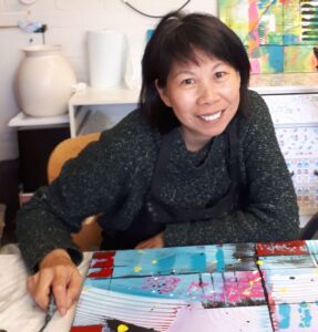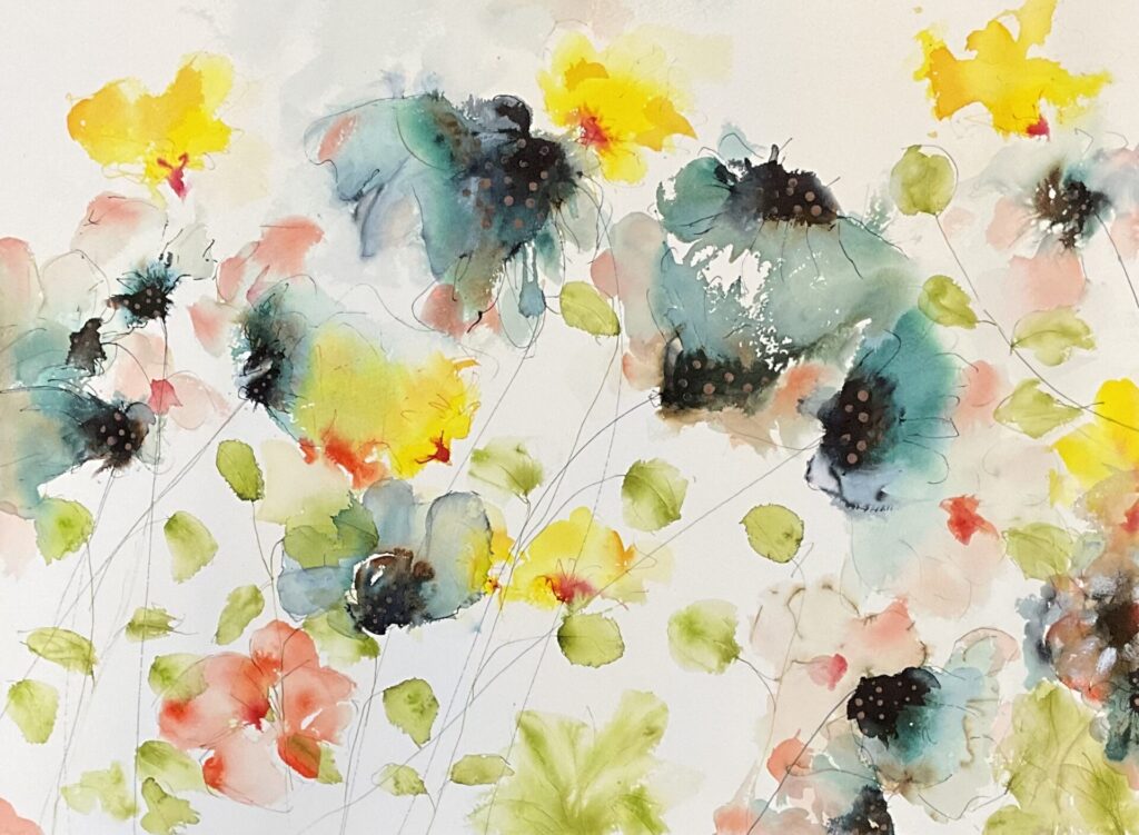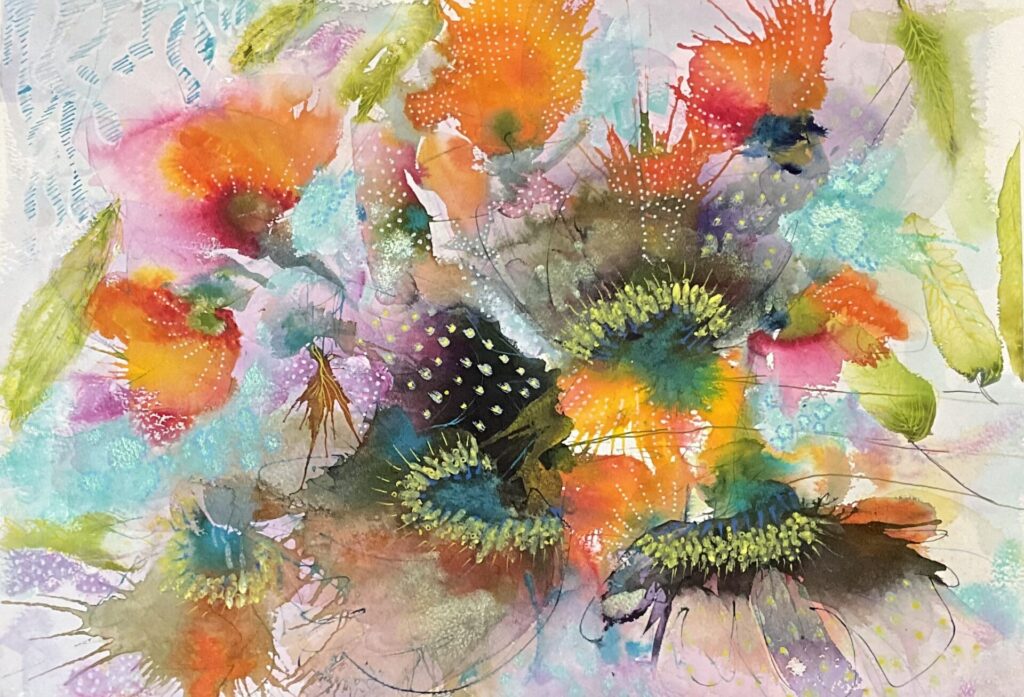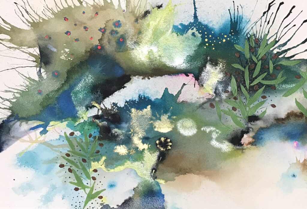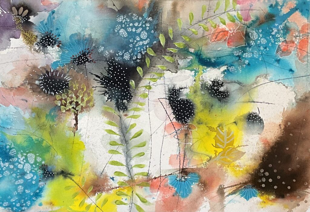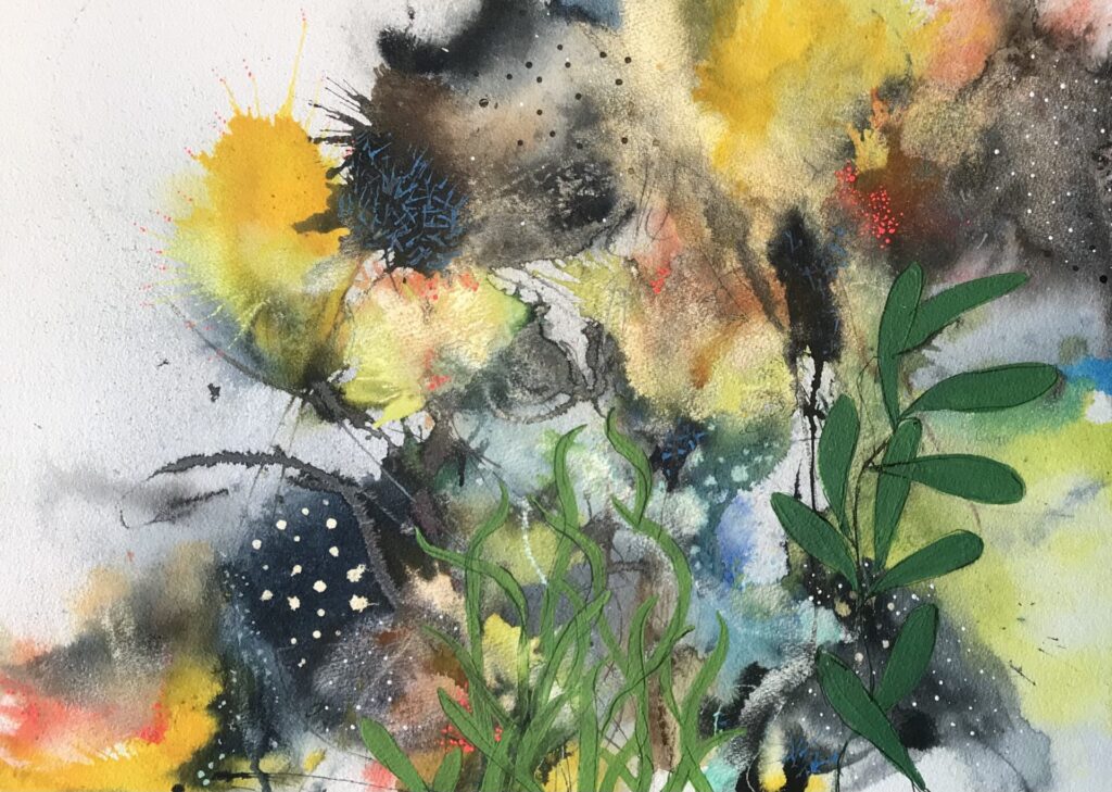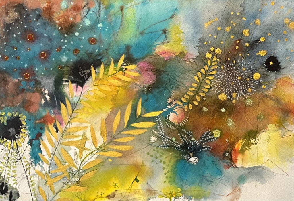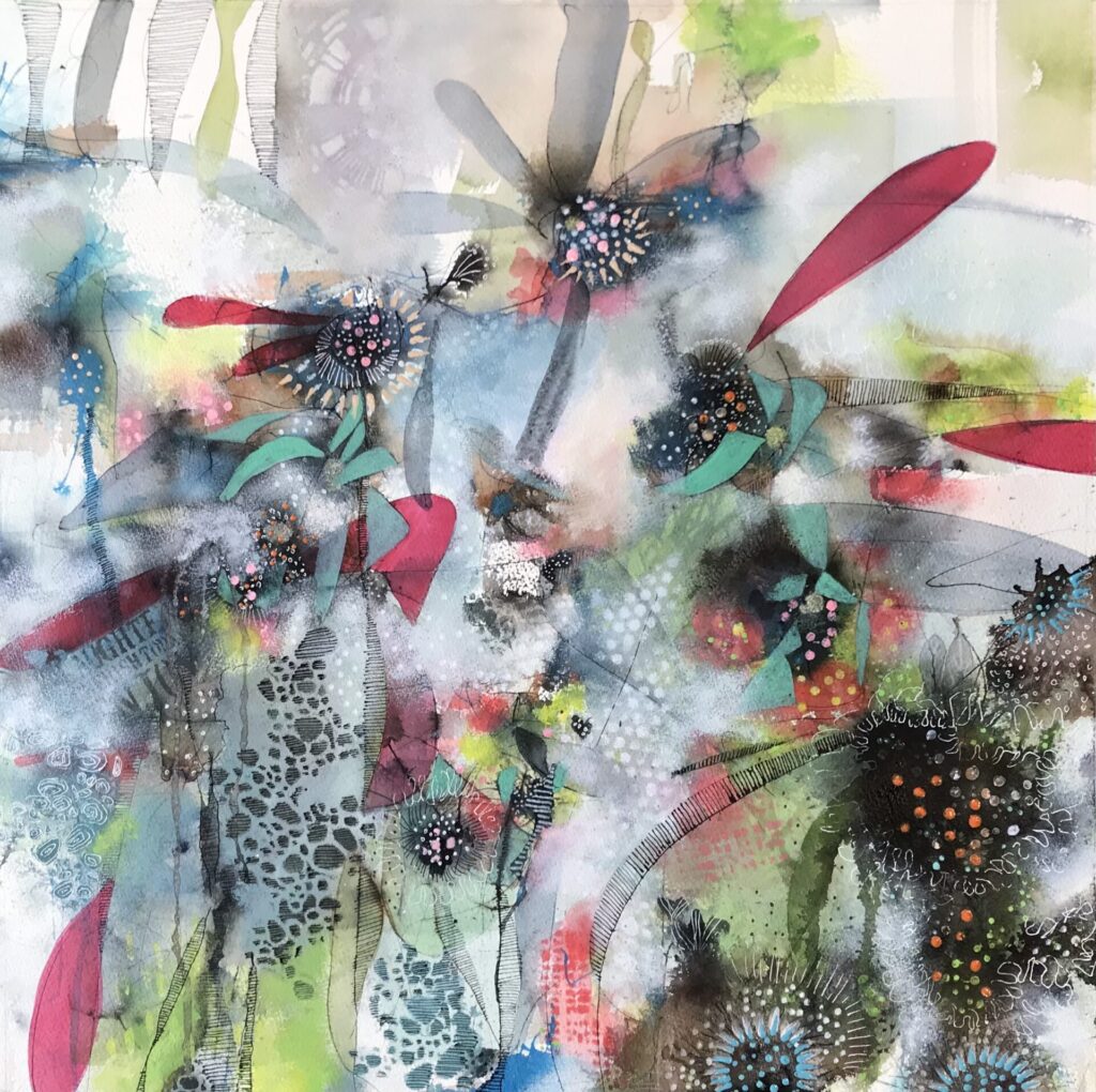 After Art college May went on to pursue a career as a Graphic Designer, working for various design companies and advertising agencies both in the UK and Hong Kong. She took a 16-year break from the design and creative scene due to family commitments and part-time work at a nursery. It was during covid May picked up a paint brush, renewing her creative interest as of 2019/2020 (Painting part time and also self taught) May paints with acrylics and uses mixed media and inks. May is a intuitive painter whose work is inspired by both ocean life and florals. Influenced by the intricate forms of plankton and the organic structures of botanical elements, she explores the natural pattern that connect life above and below surface. Working without a predetermined outcome, May allows colours, movement and instinct to guide her process. Her paintings are built through layered marks and flowing pigments, creating compositions that feel fluid, immersive and alive. Each piece reflects a unique moment-where colours merge and evolve freely-resulting in work that is both expressive and impossible to replicate.