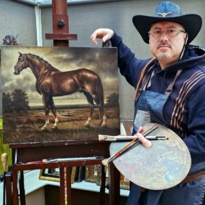 <!–block–>Sabbi Gavrailov is an award-winning, Bulgarian-born Portrait and Equestrian artist who lives and creates in the United Kingdom since 2003. He hails from Brezovo, the birthplace of two iconic Bulgarian artists: Zlatyu Boyadzhiev and Mincho Katsaroff. <!–block–>Sabbi shares a familial connection with Zlatyu Boyadzhiev through his great-grandfather, a close cousin of the renowned artist. This connection is reflected in the striking similarities between their landscape and portrait painting. In his early years, Sabbi honed his skills in the atelier of Geno Lazarov, a contemporary artist from the Plovdiv region. <!–block–>Sabbi is a member of the Hertfordshire art community, regularly exhibiting at local galleries and events and participating in national and international art competitions. His portraits have won the first and second places for the “Visitors’ Choice Award” at the Harpenden Art Club Annual Exhibitions in 2021,22 and 24 as well as numerous other international recognitions for portraiture and figurative art. <!–block–>In 2023, Sabbi debuted on the Bulgarian art scene with his themed solo exhibition, Roots, held at the prestigious Private Gallery and Art Museum Dimitar Georgiev in Plovdiv. The exhibition featured a collection of portraits, still-life works, and landscapes, highlighting his versatile talent. Since then Sabbi has presented numerous solo exhibitions with representation in the national and international art scene. <!–block–>Sabbi primarily works with oils, using his sketches and photographs as a foundation for his art. He is often invited to art seminars, workshops and live demonstrations where he presents his unique painting style. His award-winning portraits, impressionist landscapes, and still-life pieces are highly sought after, with numerous commissions to his name. <!–block–>His award-recognised artworks are in private collections worldwide, including those in the UK, Bulgaria, the Middle East, Brazil, Denmark, Cyprus, and others.