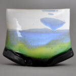 I make stoneware ceramics, wheel-thrown and often altered resulting in decorative shapes, glazed with bespoke glazes, slips and engobes. I love throwing stoneware clay on the potters-wheel. My inspiration comes from the shapes, colours and details seen in nature. I am altering and shaping my thrown pieces to create natural forms. High firing temperatures ensure the decorative works can be outdoors even in winter, in gardens as well as on terraces or balconies, adding all year-round interest and colour to your outdoor space. The ongoing exploration and experimentation into developing glazes and decoration techniques is driving my work. My latest projects explore the possibilities of decorating hand-built rectangular vases and ceramic wall-plaques with textures, coloured slips, engobes (specialist glaze) adding details in ceramic ink, ceramic pencils and wax crayons, resulting in geometric patterns as well as representing abstract landscapes.