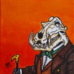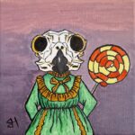 My main medium is acrylic paint, with some occasional experimentation with other mediums. I enjoy creating portrait work with a twist, encorporatong animal skulls instead of human faces and I have an interest in all things strange and unusual.