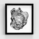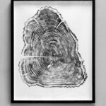Tree ring prints: The beauty of trees is obvious to see from the outside but within their structure lies a hidden beauty that I endeavour to reveal through direct printing by hand from cut tree sections from already fallen trees. I turn these sections into printing blocks by working them flat before exposing the ring formations with fire. Biography: After my formal art and design studies and some years working with interior designers on new house builds I have been working within woodlands and landscapes with the Woodland Trust and managing light and dark through a lens with Vitsoe. I set up my art practice in 2018 creating abstract art in various forms and materials for private collections and galleries.