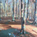 Working now in my garden studio, (up the garden path!); acrylics, gouache and oils are my chosen media. I enjoy using my local environment as my inspiration and in my paintings, aim to capture the vibrant colours, patterns and textures around me, exploring the play of light between and on surface.