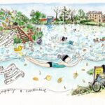 For several years my comfort zone has been doodling away in my sketchbook journal at the end of the day. My doodling now escapes from my sketchbook into portraits of pets, people and properties – I am available for live event illustration, eg for guest portraits. Sometimes these doodles quite complex and elaborate – weaving together multiple images to celebrate a special event or memory. These are my Big Day Doodles.