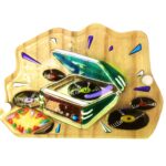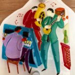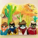 MAGGIE BARTON – SNAPPER GLASS Working in fused glass in vibrant colours and quirky subjects. Trained initially in stained glass, now use my cutting skills to create my pieces. My influences have been Music – Mexican/American Southwest – Retro – Tribal – Festivals. I love experimenting and am always trying out new techniques. My pieces can be mounted on backing board for hanging or freestanding and I often incorporate driftwood and found objects. I have exhibited widely and welcome commissions. A member of The Contemporary Glass Society.