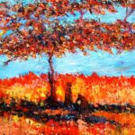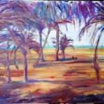 Mary Ann continues to paint with both brush and palette knife. She has also allowed her long-standing fascination with the sea to come through her work, developing a series of colourful coastal scenes, reflecting her fascination with wind-lashed islands such as Hawaii and Fiji, where the sun sets in a bright red-gold glow and the palm trees sway in the tropical breeze. You can almost feel the breeze brushing your face as you take in the bright exotic colours, following humbly in the giant footsteps of the trail left by the likes of Gaugin and Cezanne.
