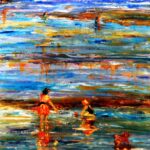 Her home country, the UK, has been inspirational in her artistic development. Recently the red earth of Australia and the azure of the sea have been feeding her endless curiosity for subject matter to put to canvas. Mary Ann has featured in several local art exhibitions on the outskirts of London. Currently, Mary Ann has been experimenting with thick layers of paint laid on with a palette knife, using bold, bright colours, depicting a series of scenes showing everyday people at play or at work, on the beach or among their friends, catching them momentarily in a scene as if through candid camera.